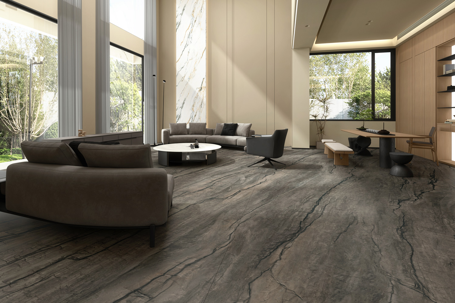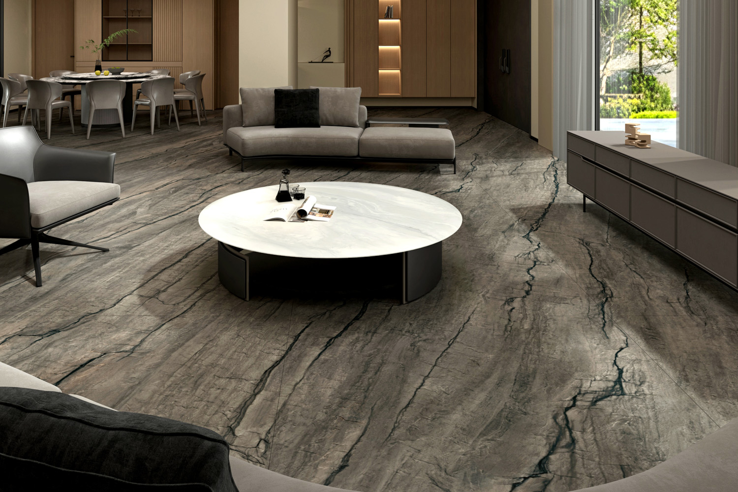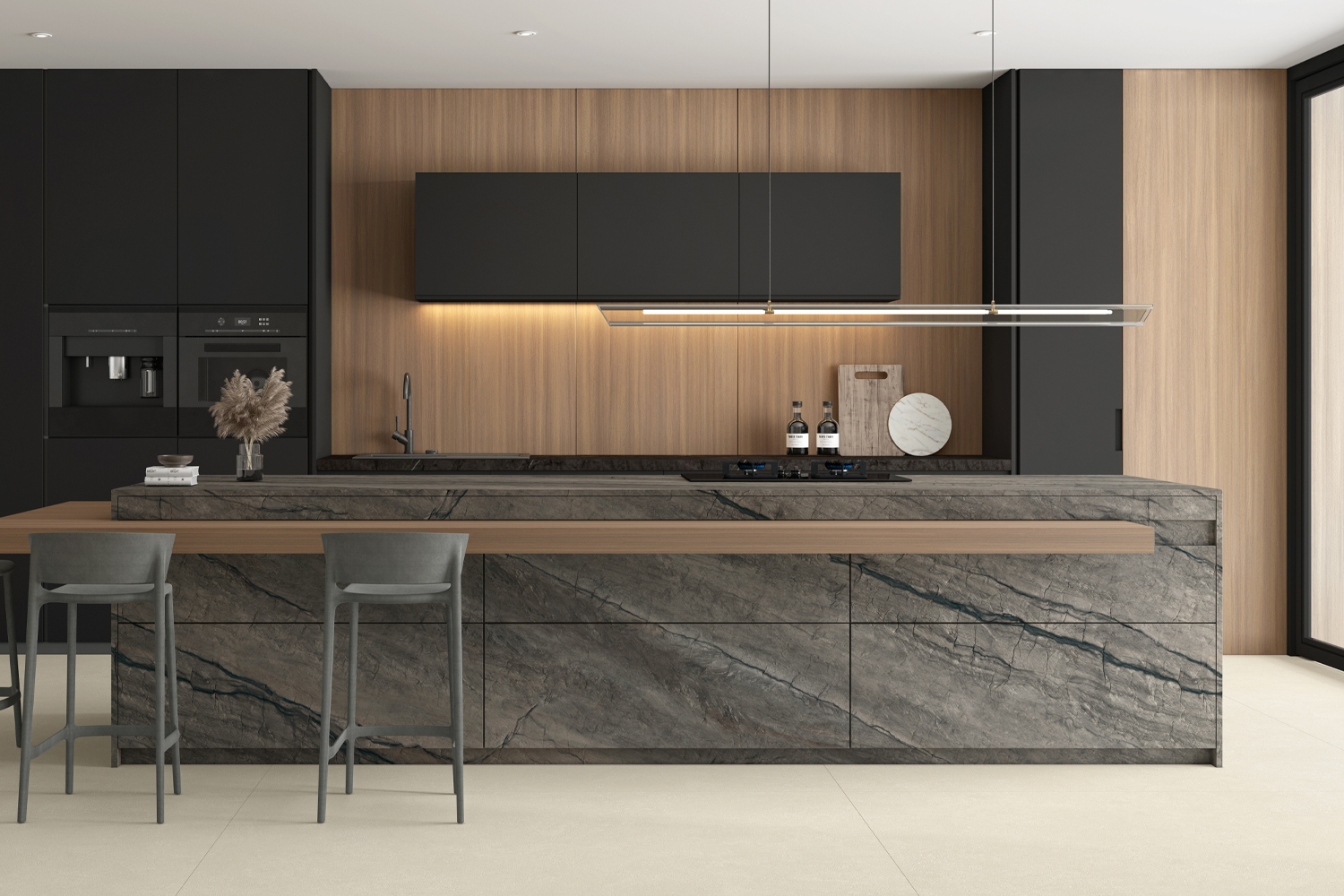 | Bringen Sie die rohe Schönheit der Natur in Ihr Zuhause. Diese Keramikoberfläche besticht durch einen tiefgründigen, anthrazitfarbenen Grundton, der Geschichten von uraltem Gestein erzählt. Die Optik erinnert an schroffen Schiefer und wilde Küstenlandschaften. Markante Risse und feine Klüfte durchziehen den dunklen Fond und erzeugen eine faszinierende Tiefe mit fast haptischer Wirkung. | |||||||