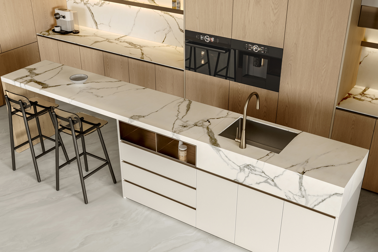 | Diese Keramikplatte fängt die Essenz des wohl begehrtesten Marmors der Welt ein: Ein kristallklarer, eisweißer Hintergrund, der von einer kraftvollen grauen Aderung durchzogen wird. Die Oberfläche strahlt eine fast skulpturale Ruhe aus. Die fließenden Bewegungen der grauen Maserung erinnern an gefrorene Flüsse in einer Schneelandschaft. Ein Design, das keine Farben braucht, um zu wirken, perfekt für Räume, die Klarheit, Licht und zeitlosen Luxus atmen sollen. | |||||||